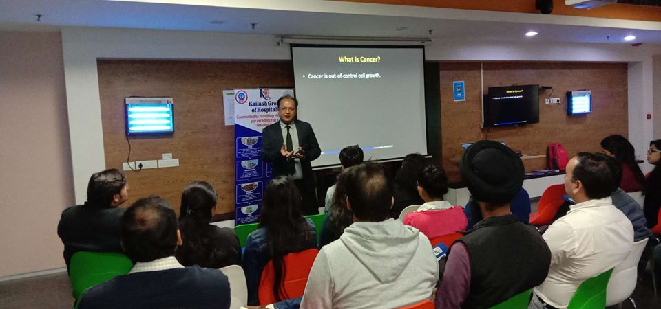 Kailash Hospital & Heart Institute Noida organized a free Health Talk Show on “Cancer Awareness” on 13/12/2019 from 11:00 am to 12:00 pm at Thales India Pvt. Ltd, Pride Tower Sec.-125, Noida, U.P. – 201305. Dr. Manav Rakshak delivered the lecture and was immense interactive session.