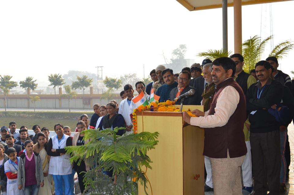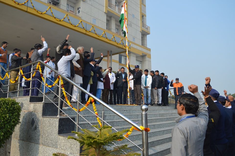 - Republic Day was celebrated in all its solemnity & grandeur at Kailash Hospital, Khurja. The event started with hoisting the National Flag with tunes of National Anthem by Medical Superintendant Dr.Avinash Prakash & Director Shri.Satyaparakash (Bhai sahab) followed with a wonderful speech by them.
